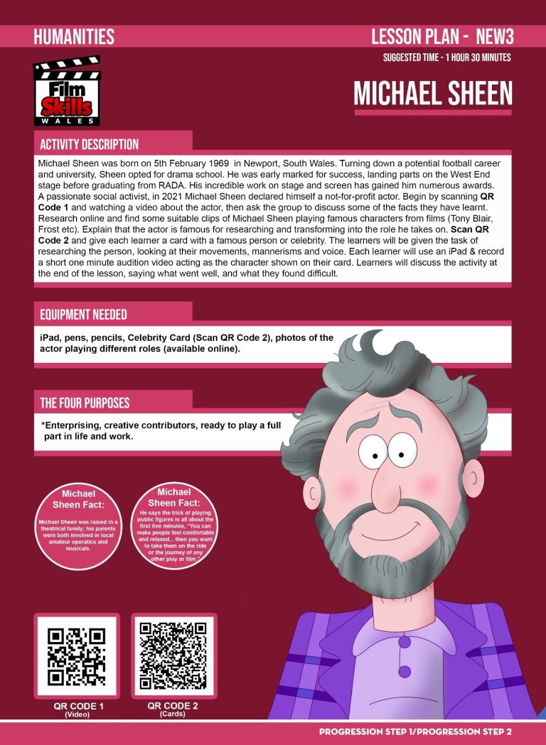 A new special Film Skills lesson featuring the actor Michael Sheen is now available to be downloaded for free. The Humanities themed lesson is part of our Film Skills project and can be used independently or as part of a group of lessons. The lessons are aimed at Progression Steps 1 and 2, to download the lesson for free click the picture.